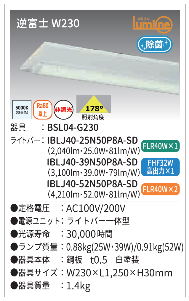 市場には多くの除菌照明が存在しますが、BSL04-G230はその中でも特にコストパフォーマンスが高く、他製品と比較しても優れた特長を持っています。