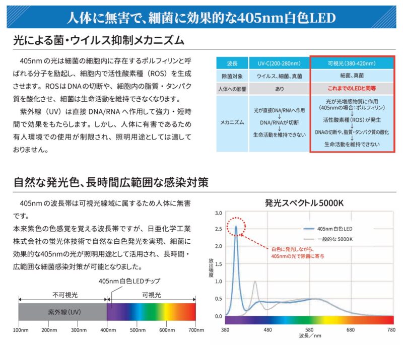 「BSL04-G230は、業界最先端のLED照明技術を活用し、除菌性能を搭載しています。具体的には、UV-Cライトを使用して空間内の細菌やウイルスを除去する能力を備え、安心・安全な環境を提供します。
