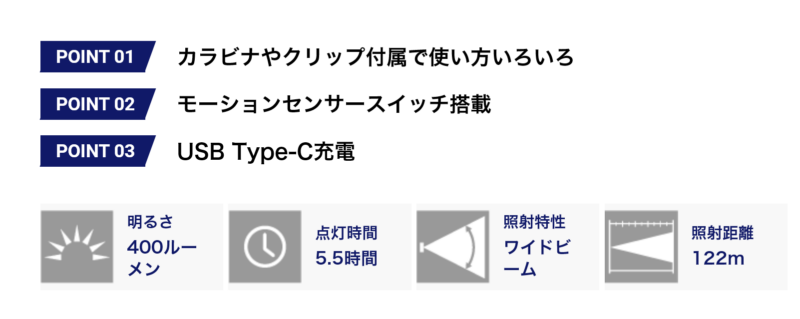 選ばれる理由の一つは、その多機能性と高いコストパフォーマンスです。一般的なライトとは異なり、CP-77MFはライト以外にも便利な機能を多く備えています。例えば、USB充電対応や、3つの照明モード(強/弱/点滅)など、使い勝手が非常に良い点が挙げられます。