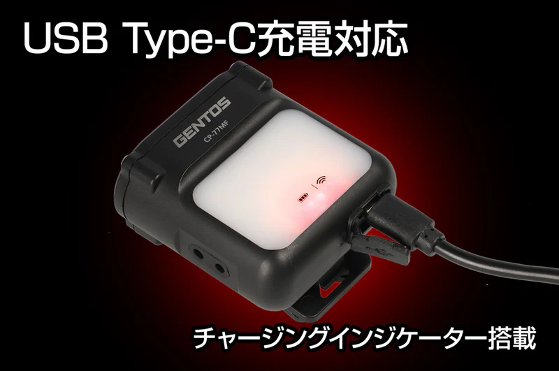 CP-77MFは、フル充電で最大6時間の使用が可能で、長時間のアウトドア活動に適しています。特に弱光モードでは、さらに長時間の使用が可能で、バッテリー切れを心配することなく長時間の活動ができます。
