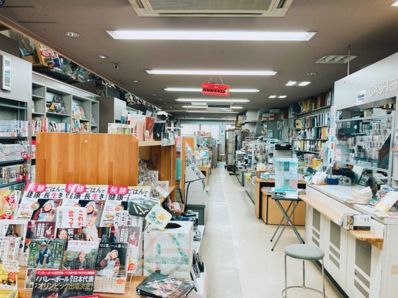 オレンジの看板がトレードマーク。すらりと奥に伸びる店内には、売れ筋だけでなく店主選りすぐりの書籍や文具、事務用品が並びます。