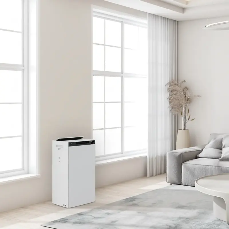 KI-UX75は、上質なファブリック調デザインを採用。家具のような質感で、リビングや寝室に自然に馴染みます。