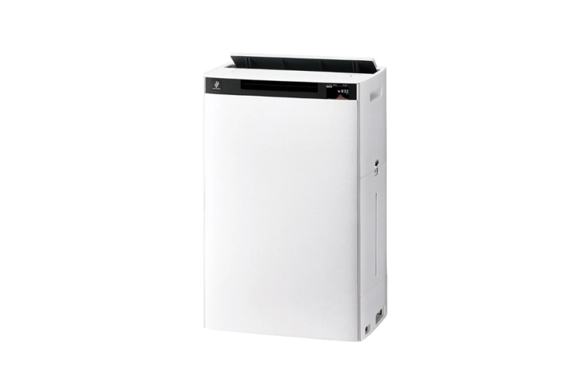 KI‑UX75は、業界トップクラスの加湿量900 mL/hを実現。この能力により、乾燥が気になる季節でも短時間で室内の湿度を快適ゾーンに整えます。加湿方式は気化式で、風を2回通す二層構造フィルターと加湿集中ガイドが、効率よく水分を気化・放出します。