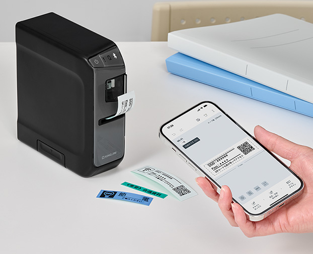 PC向け「テプラ クリエイター」は、Excel連携で大量ラベルを一括作成可能。スマホ向け「TEPRA LINK 2」はQRコードやバーコード印刷、翻訳機能、テンプレート利用など多機能。記号・絵文字、外枠などを豊富に搭載。さらにクラウド連携APIでWebアプリから直接印刷でき、企業のDX推進にも対応します。