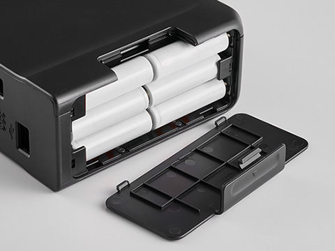 ACアダプタだけでなく、単3形乾電池6本で動作可能な2WAY電源設計を採用。電源が確保しづらい倉庫や屋外現場でも、コードレスでラベルを印刷できます。イベント会場や工事現場など、電源環境が不安定な場所でも安心して使用可能です。